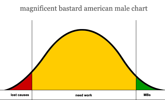 So he's warm. And remember, as Tom Brady clearly demonstrates, many MBs are made, not born. We say give him the benefit of the doubt. If you look at our graph of the American male below, the vast majority need work and with your help, this guy sounds like he could be on the verge of breaking through.